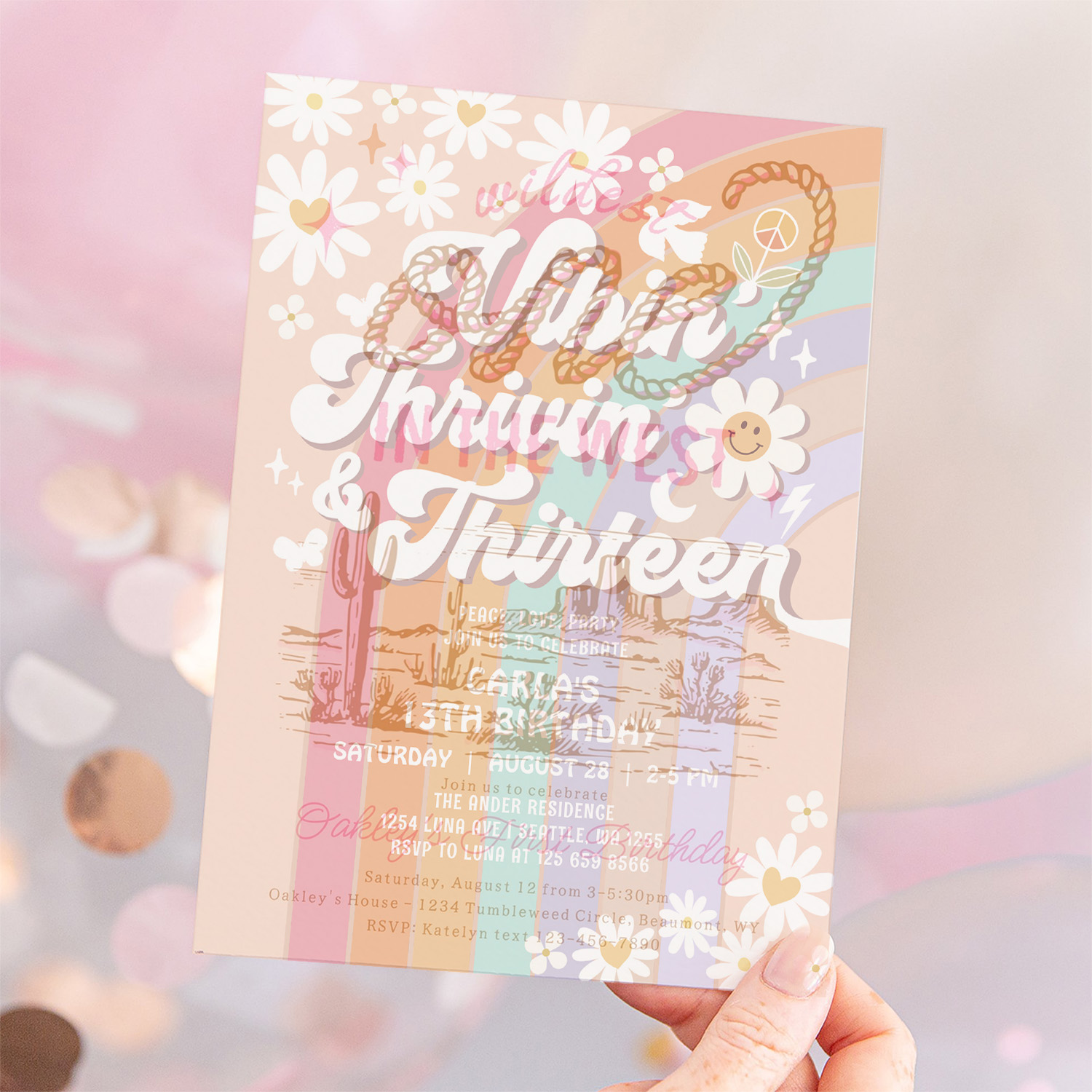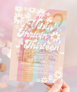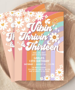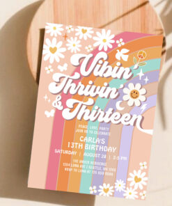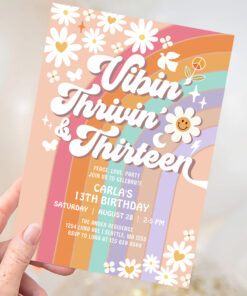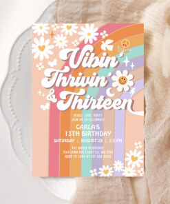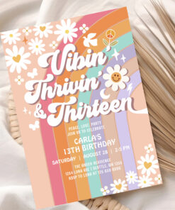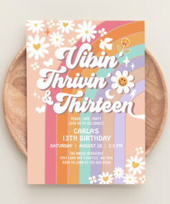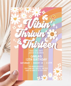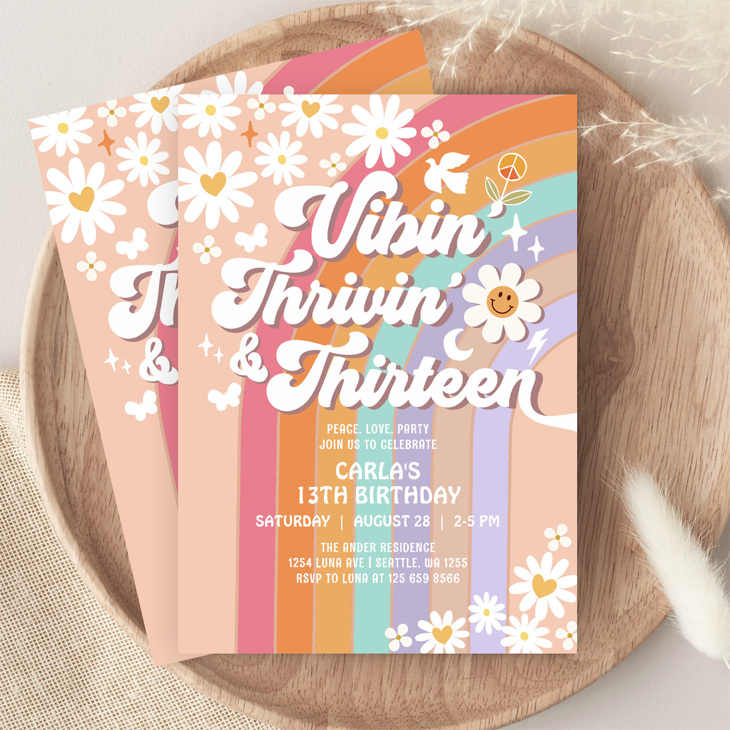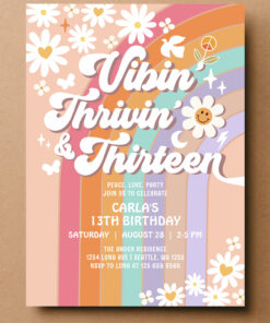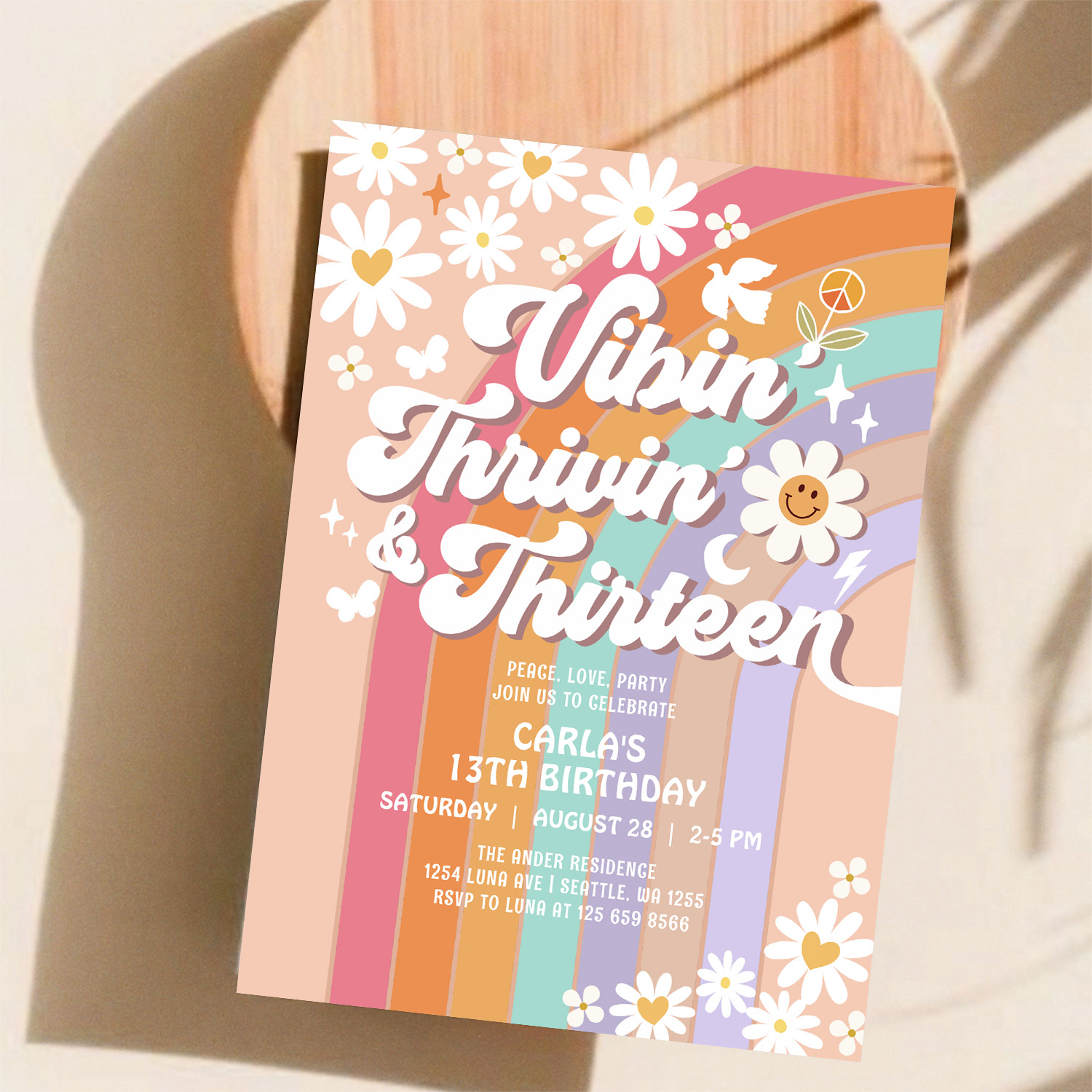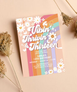 Vibin Thrivin And Thirteen Hippie 70S Birthday Invitation